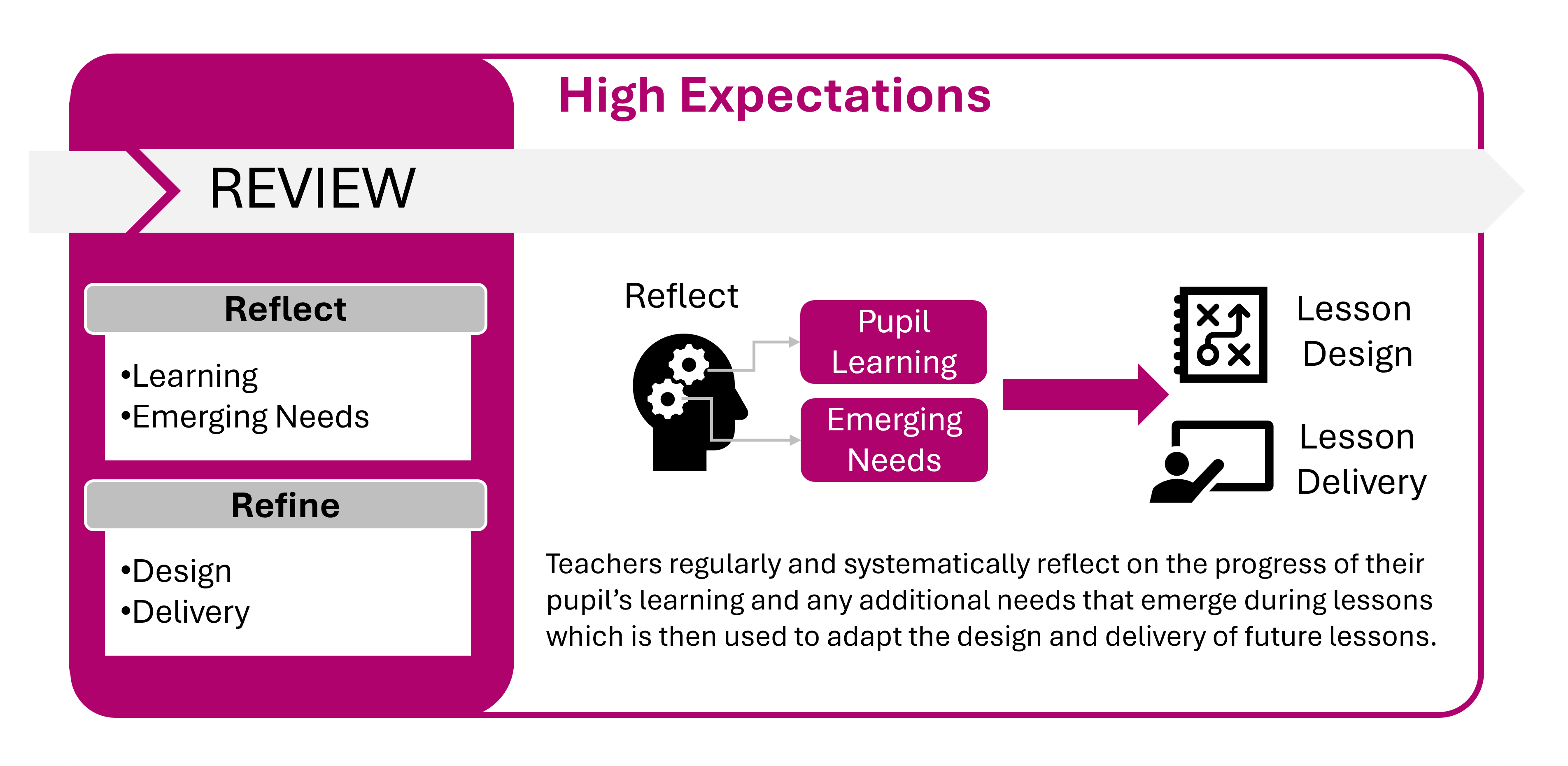 The final piece of the adaptive teaching cycle requires teachers to protect time to reflect on the success of the teaching and learning within their lessons. In terms of adaptive teaching, specific focus needs to be applied to the following questions: